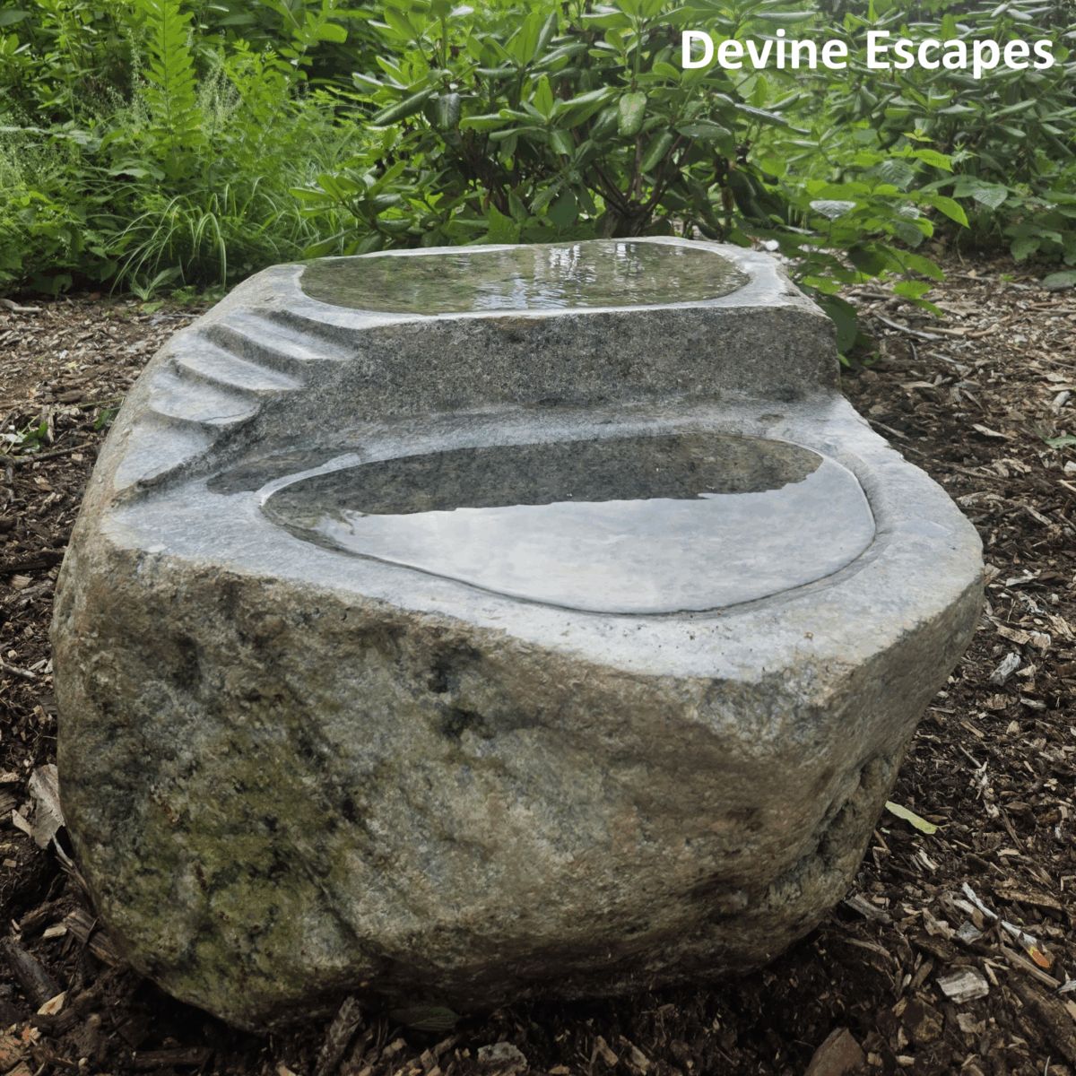 An alternative to the more common bronze plaque. Hand carved from Pennsylvania Bluestone, the plaque here matches the seating platform. The boulder legs are made from boulders I collected within a mile of my own house here in the Pocono Mountains in Pennsylvania. Bird baths and benches delivered across the USA.