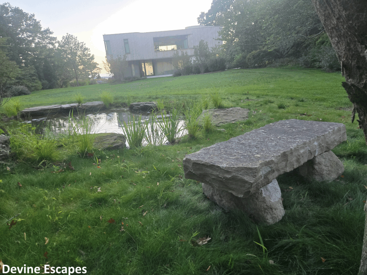 Hand made and personally delivered stone bench, at Sag Harbor, Long Island